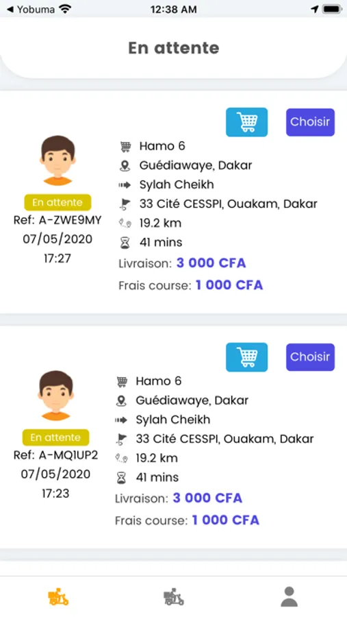 Application qui permet aux livreurs de voir les livraisons et de les choisir.