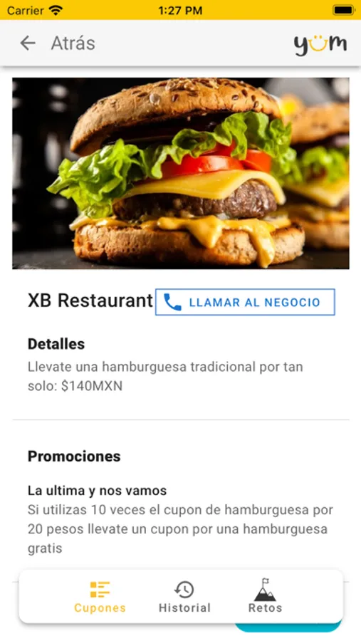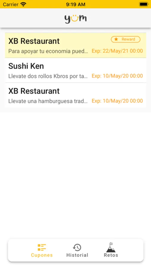 At YUM you will find coupons for your favorite local restaurants with unbeatable promotions and discounts. You can share these coupons with family and friends. The more you use or share you will receive more and better reward coupons which can give you free product or greater discounts.
