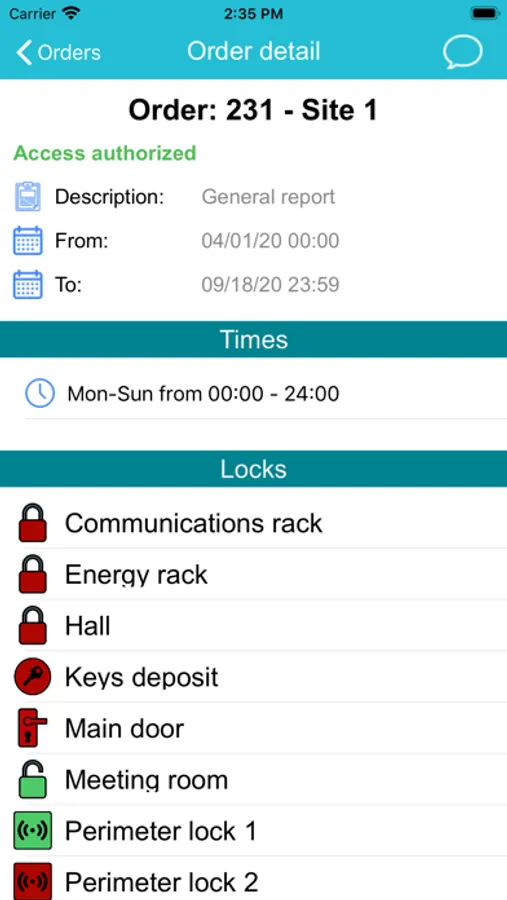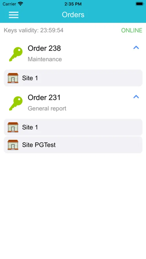 - Expand the orders to see the included sites and select one site to see all the available locks.