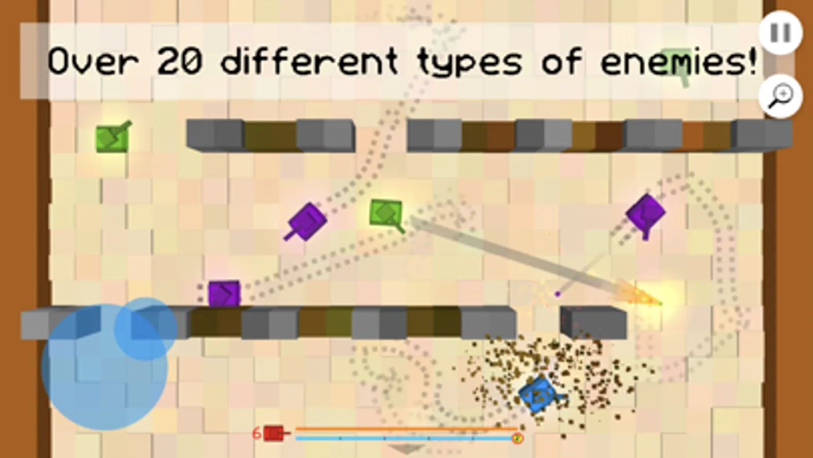 Tanks is a top-down shooter in which you control a blue tank and try to defeat various enemy tanks with assorted abilities to clear levels. You can play Tanks in multiple gamemodes, alone or via cross-platform multiplayer with as many friends as you'd like: