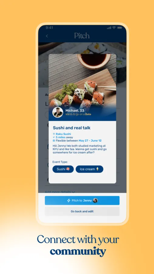 * Discover events and Pitch people who share your passions