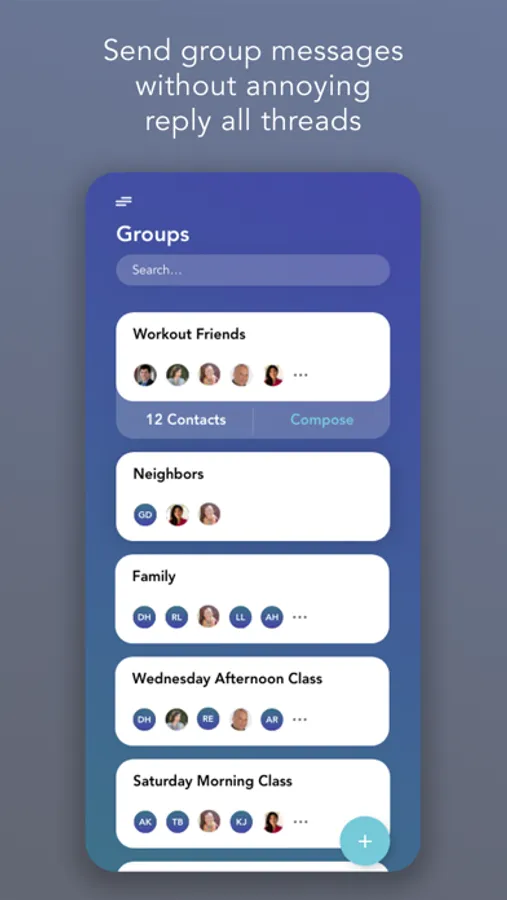 No more reply all group messages. With Relay you can send the same message to large groups of recipients and not have to worry about group messages.