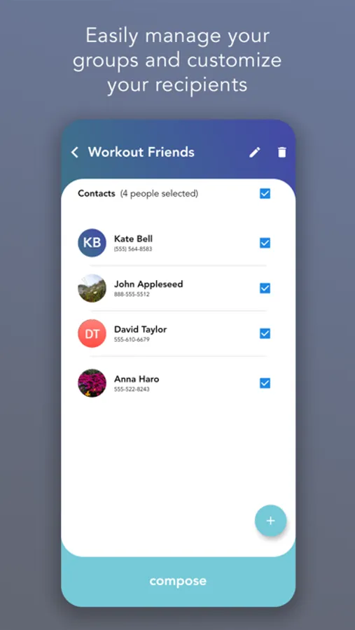 * All the messages come from your number, so you don't need to worry about losing responses or alarming recipients.