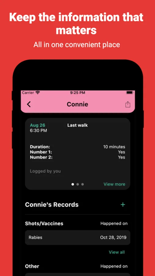 ICAY Pets also allows you to log records, such as veterinary visits, surgeries and vaccines for you pet. For these records, you can also set reminders and be notified at a date of your choosing