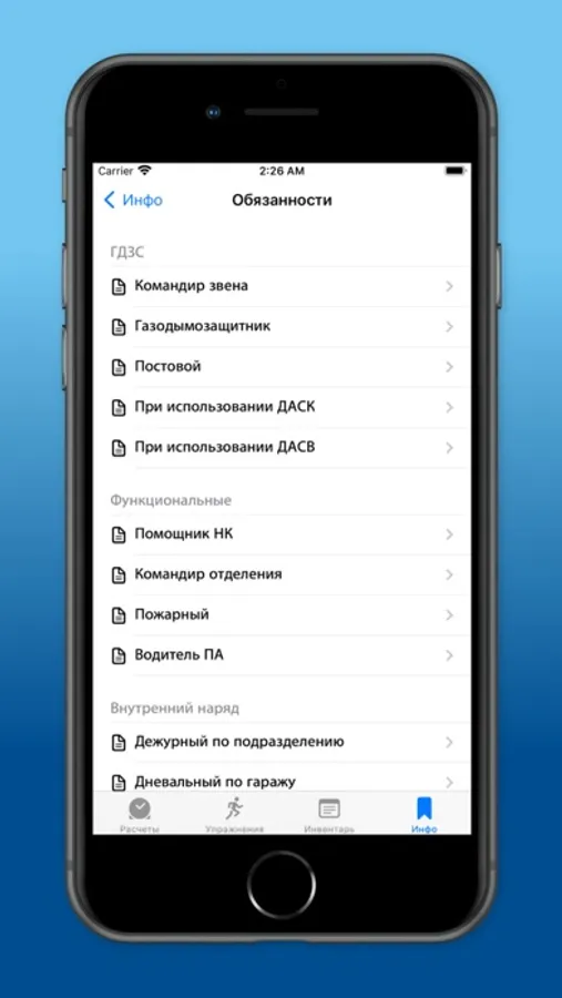 Так же в информационном разделе можно найти основные выдержки из руководящих документов по ГДЗС и тушению пожаров.