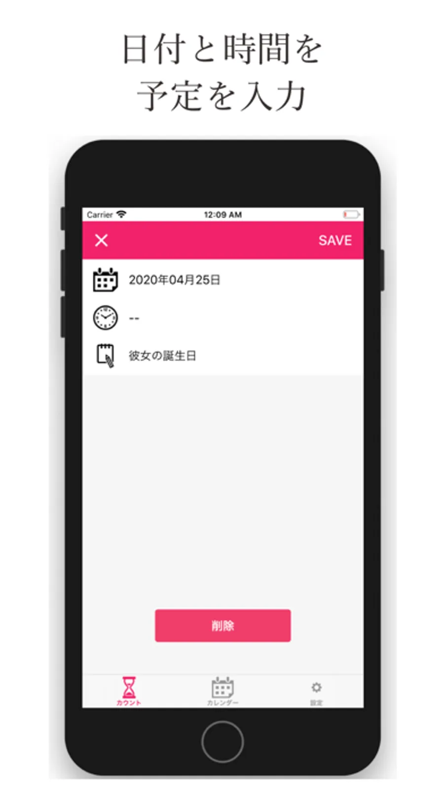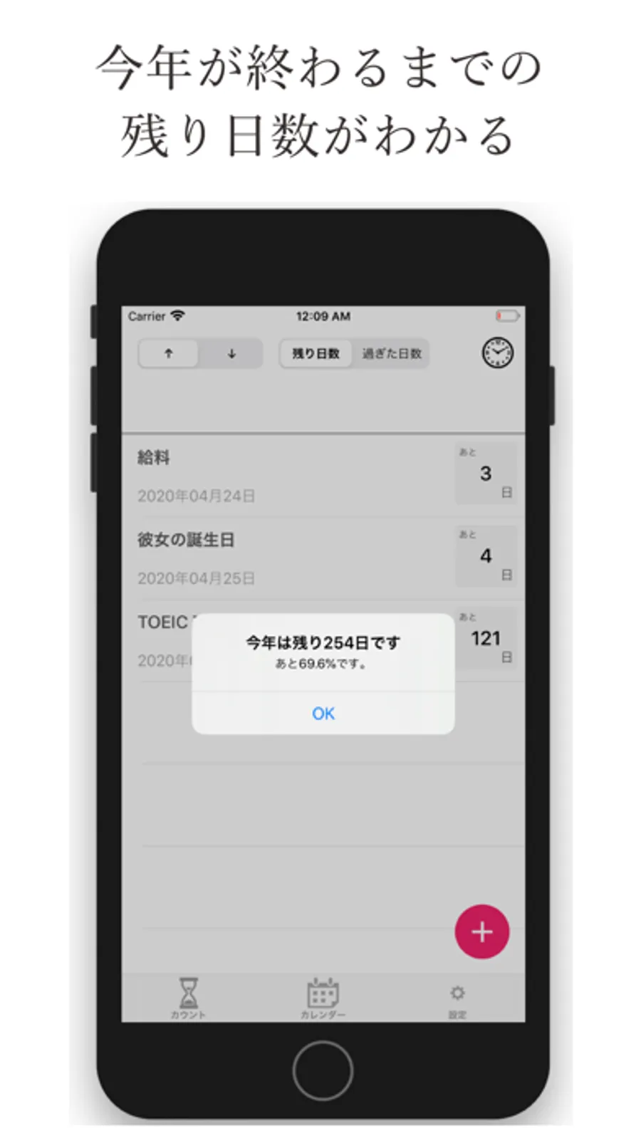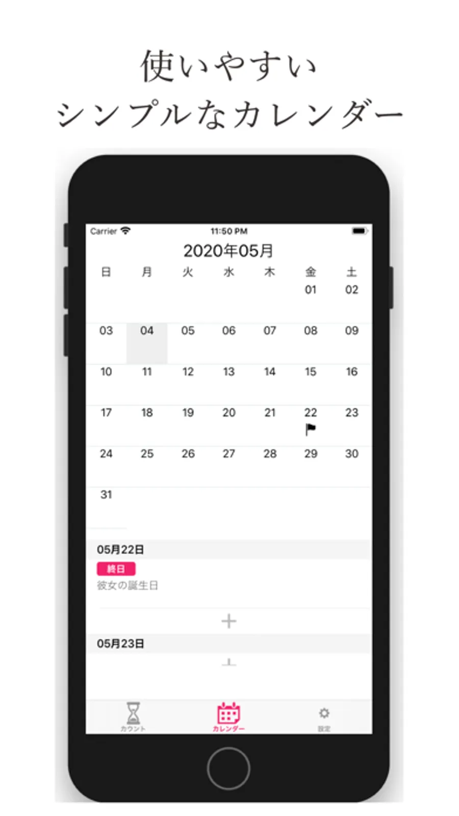 このアプリは、予定した日までの残り日数をカウントしれくれるカレンダーです。