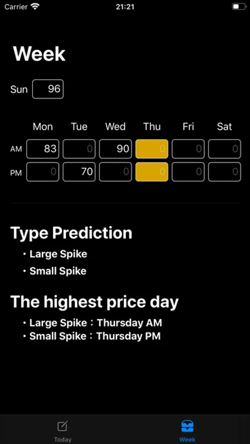 KabMoni predicts this week "Type" based on turnip prices you input everyday.