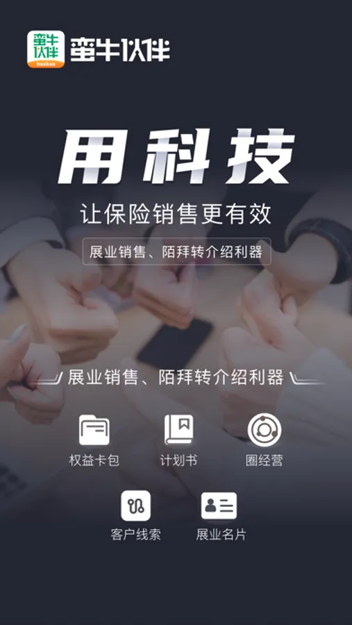 蛮牛伙伴旨在通过科技赋能、信息化、安全大数据等手段,帮助代理人全面提升综合能力、提高展业效率,提高管理层的管理效率,推动保险行业管理的信息化进程!