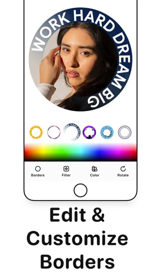 - Border & photo editor: Personalize your profile picture like never before. Modify the color of your chosen border to match your style, and apply filters in the photo editor to make them look truly impressive in a circle crop.