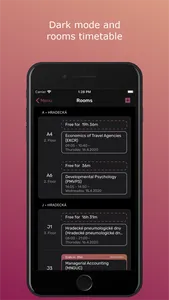 Rooms and their timetable. From each building, choose the rooms you visit during free hours or breaks, so you know when they are free to access.