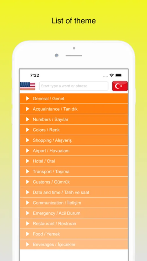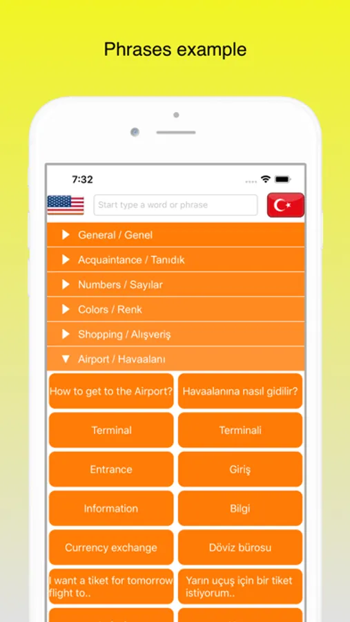 Offline English-Turkish phrasebook.