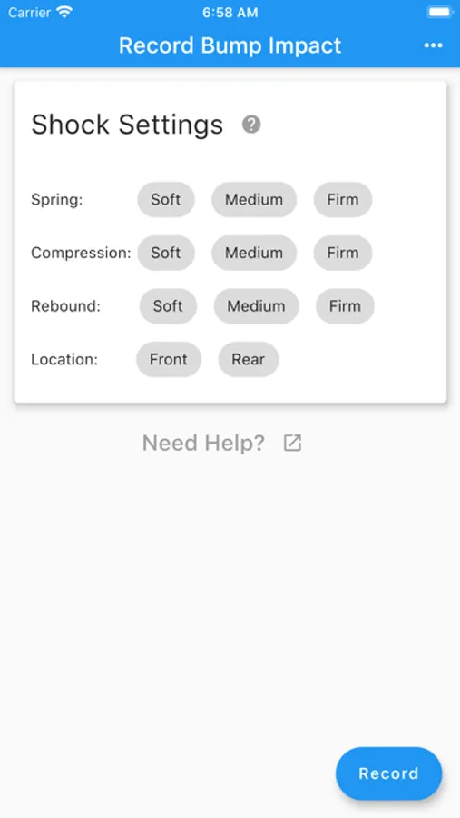 Tune your mountain bike's front or rear shock for the best ride possible. This app uses your phones accelerometer to capture, graph, and analyze acceleration data in real time. The app allows the rider to record multiple settings scenarios (spring rate/PSI, compression damping and rebound damping). Then the rider can compare and analyze the scenarios to learn which transfers less acceleration to the bike and rider, reduces oscillation, etc.