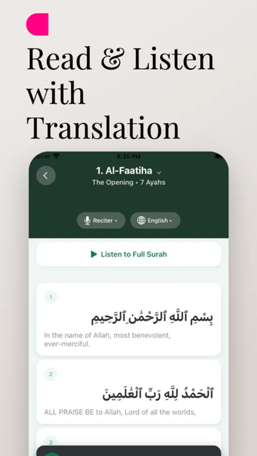 • Audio recitation: Listen anytime and follow along while reading.