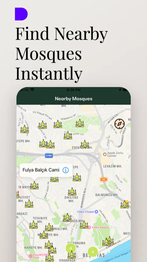 • Nearby mosques: Discover mosques around you on the map and get directions.