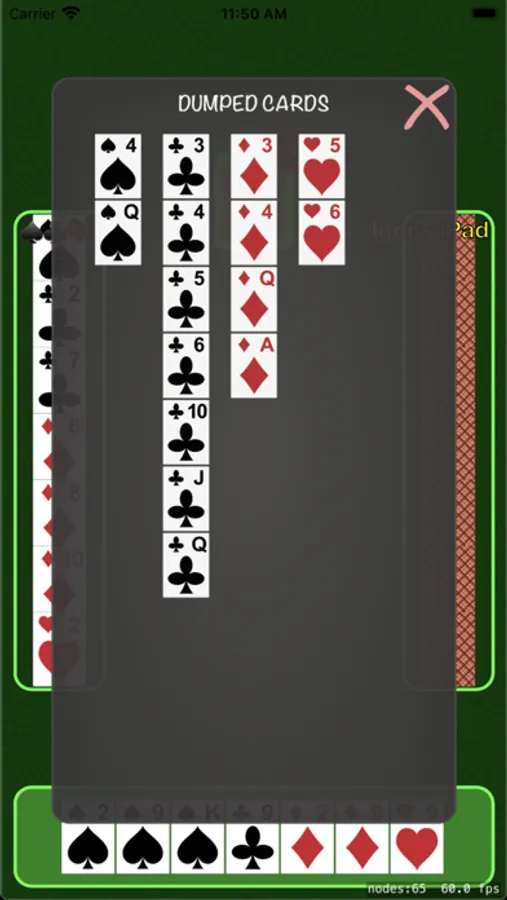 - Show your cards to other players (Extended Version only). You select who should see your cards. If you are shown another player's cards, you may expand the view by tapping on the player's hand and holding it for a few seconds. A view with all of his/her cards will be displayed.