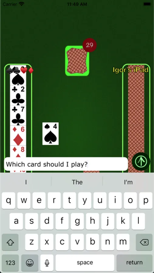 If you have to switch to another application (e.g., to take a call), you will be disconnected from the game. Other players will see that your hand has turned red, meaning that you are temporarily away. To return back to the game, tap on the Find Players button and select any player. Your hand will be the same as when you left it.