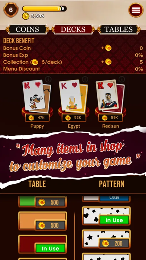 - You can use hints, undo and especially shuffle feature to support your experience when playing.