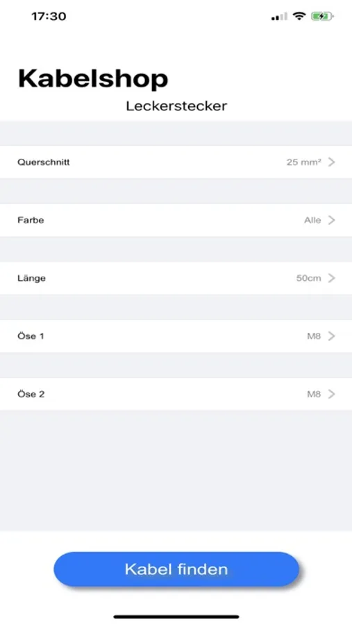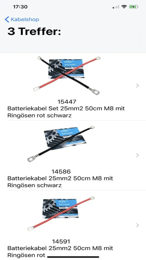 Die Kabelshop App um Batteriekabel zwischen 10 mm2 und 70 mm2 schnell zu finden. eXODA Kabel gibt es fertig konfektioniert in vielen verschiedenen Varianten. eXODA Kabel bestellt man, damit man schnell eine fertige Lösung zum Einsatz bringen kann. Die eXODA Batteriekabel Kabelshop-App hilft Dir das richtige Kabel zu finden. Als Auswahlmöglichkeiten kannst Du Querschnitt, Farbe, Länge und die jeweiligen Durchmesser der Ösen aussuchen. Wenn Du das richtige Kabel gefunden hast, kannst Du dieses sofort über den Leckerstecker Onlineshop bestellen.