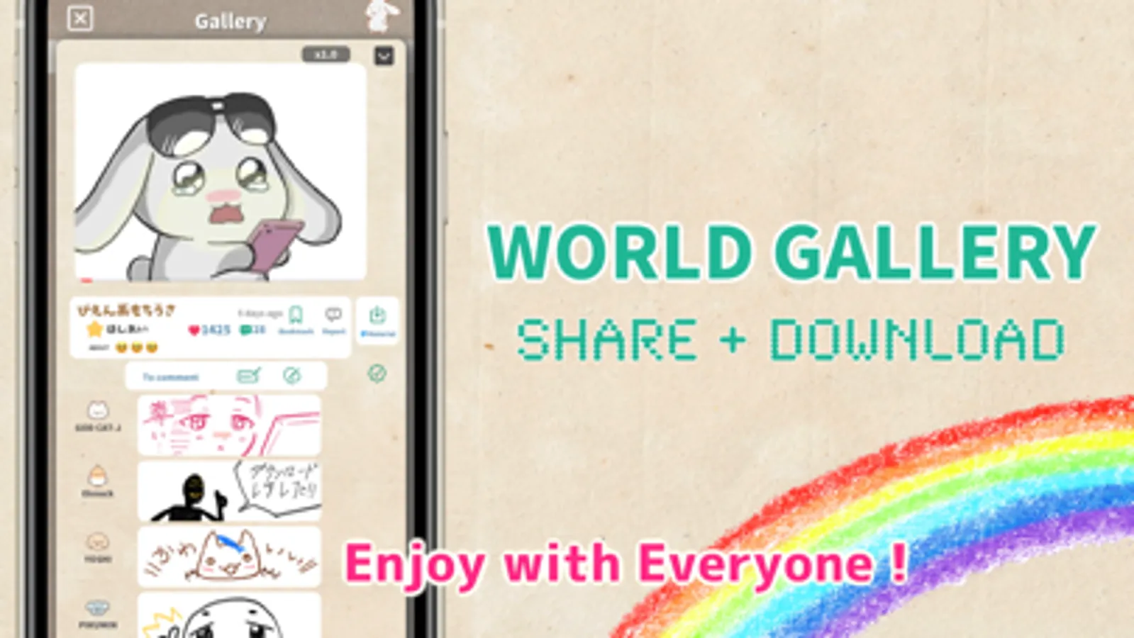 It's very easy to share your own animations with friends and the world. FlipStudio has "material system" that can share animation project files.If you download the material of works and register it in your favorite frames and layers, you can use the material for your own work! So you can learn animation skills and tips from great cartoons and masterpieces.