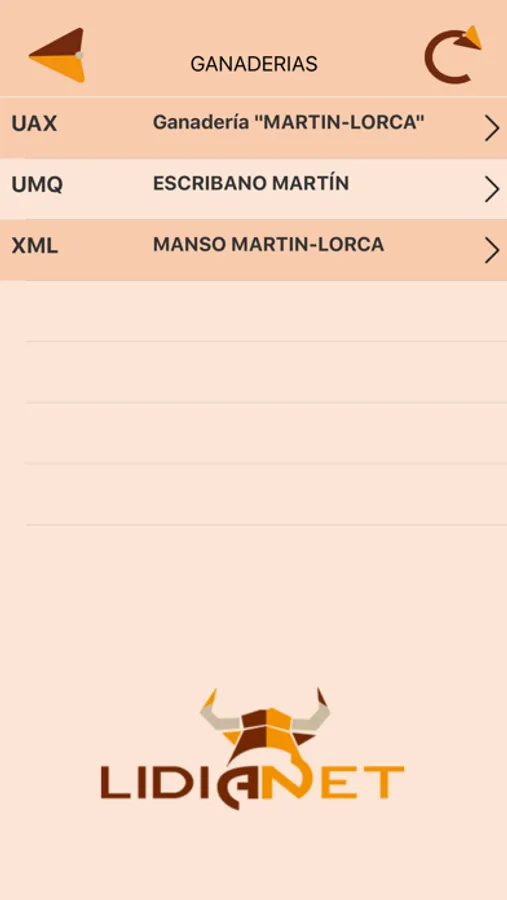 La App LidiaNet le permite consultar las fichas de tienta y de lidia de cualquier animal, sus puntuaciones, comentarios, datos de la tienta o lidia: fecha, lugar, torero, trofeos del toro y del torero, etc. Todo ello según lo tenga definido en el programa LidiaNet.