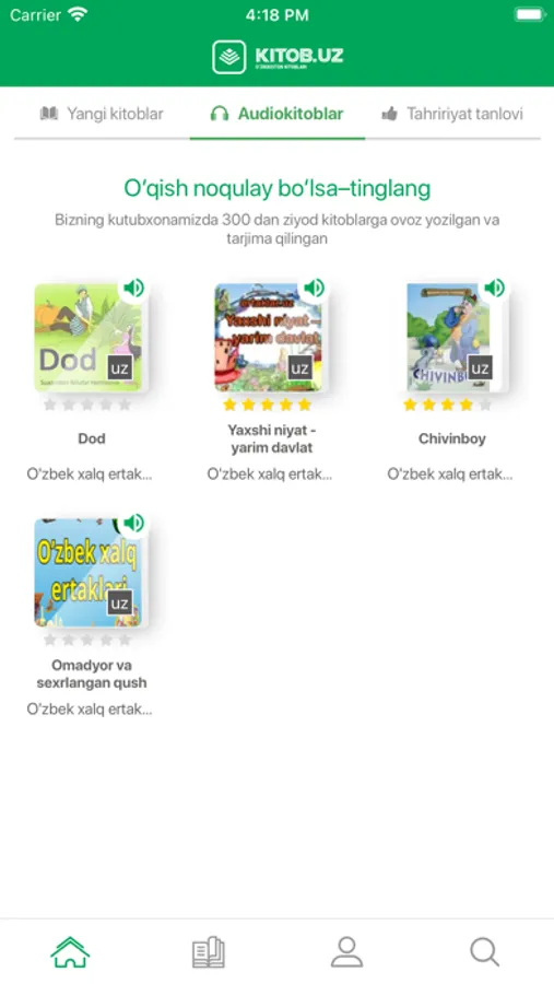— ilovaga kitoblar va audiokitoblarni yuklab olib, ularni oflayn rejimda o‘qish imkoniyati;