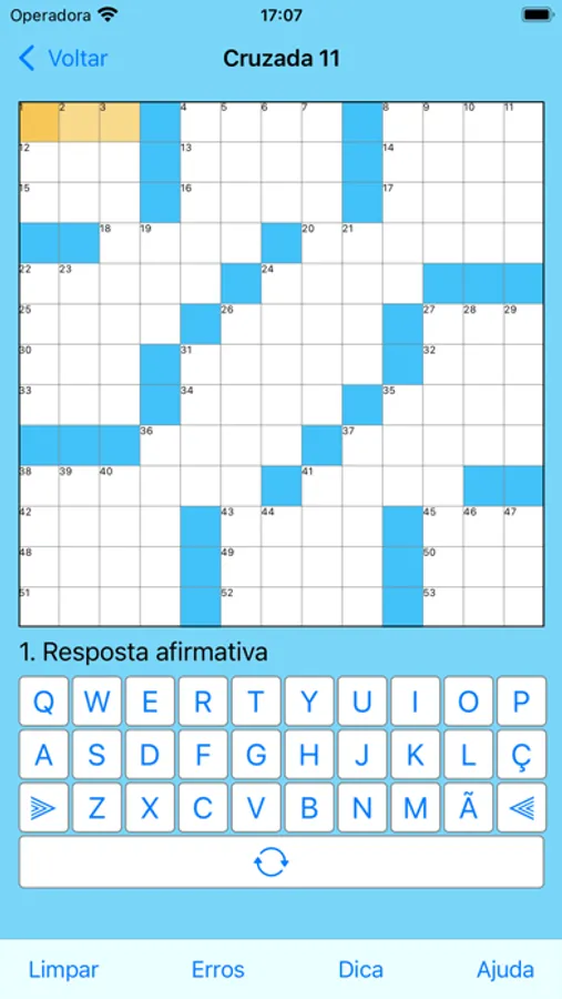 Bem-vindo ao Cruzadas Classicas! Palavras cruzadas fáceis onde cada palavra possui no mínimo 3 letras e todas as letras pertencem a uma palavra na horizontal e a uma na vertical.