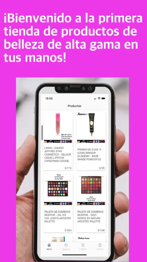 Este aplicativo te permitirá realizar compras por categorías de productos de maquillaje de alta gama, en diferentes marcas que desees adquirir.