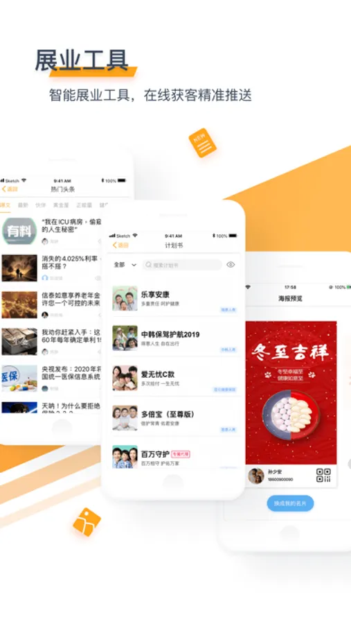 壹佳保是一款服务于保险销售人员的展业工具,工具主要以上线获客,保险产品资料展示,利益演示为主,通过在线获客,分析客户,管理客户。