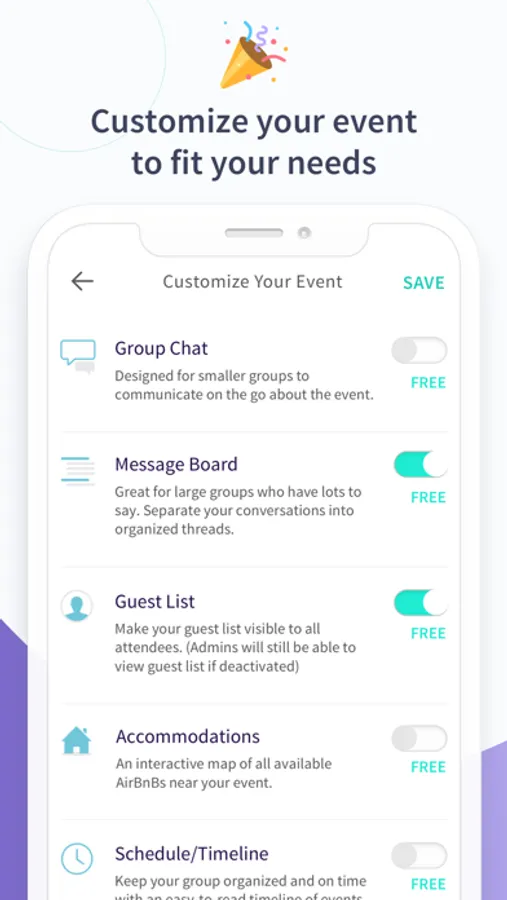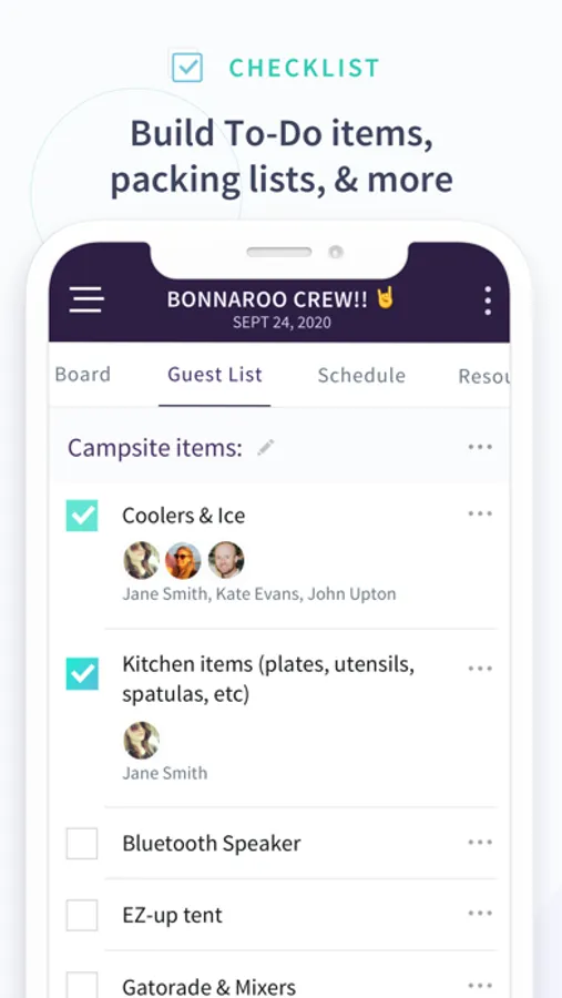 Send a custom invite via link/email/text, collect RSVP’s, and enable any of our free group planning tools to fit your event: