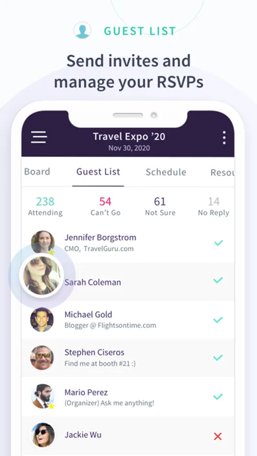 - Manage RSVP’s and choose whether guests can view who else is coming