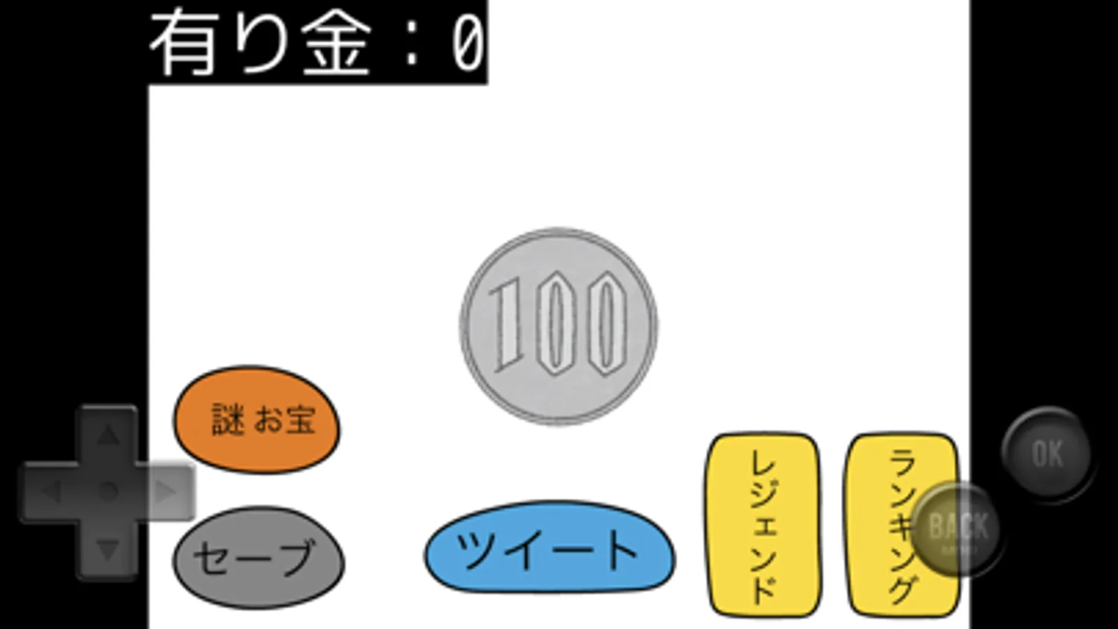 画面中央の100円をタップしてひたすら有り金を貯めまくるクソゲーです。