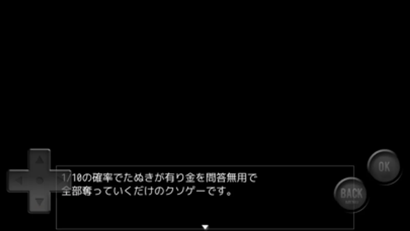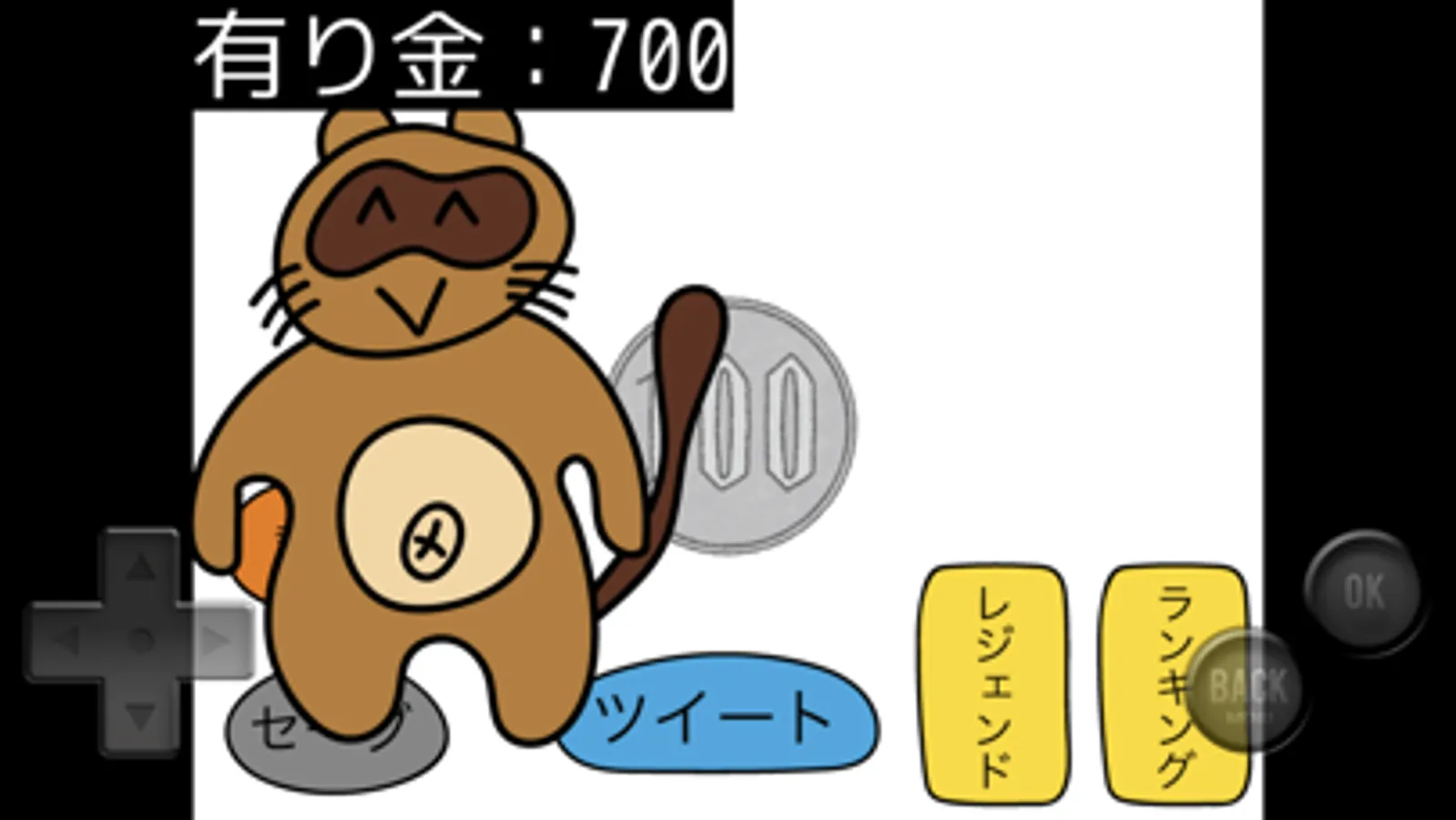 なお、1/10の確率でたぬきが問答無用で有り金をすべて奪っていく模様です。