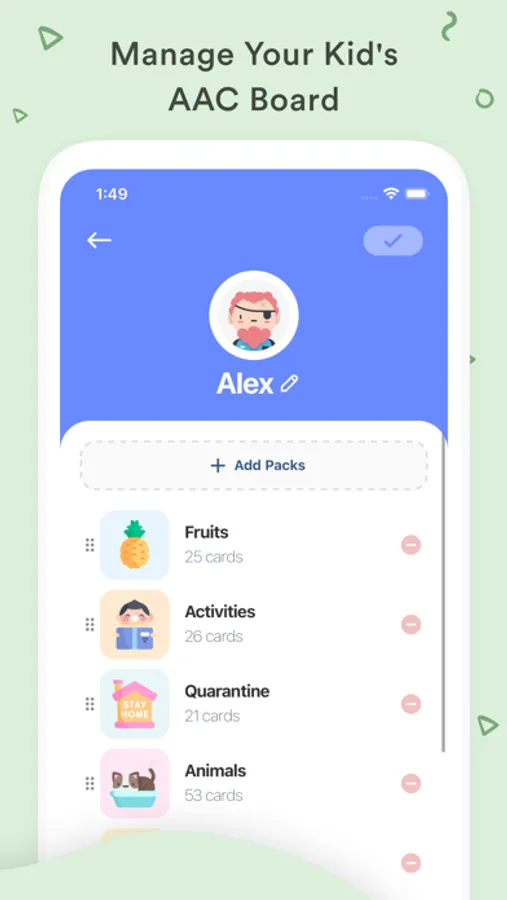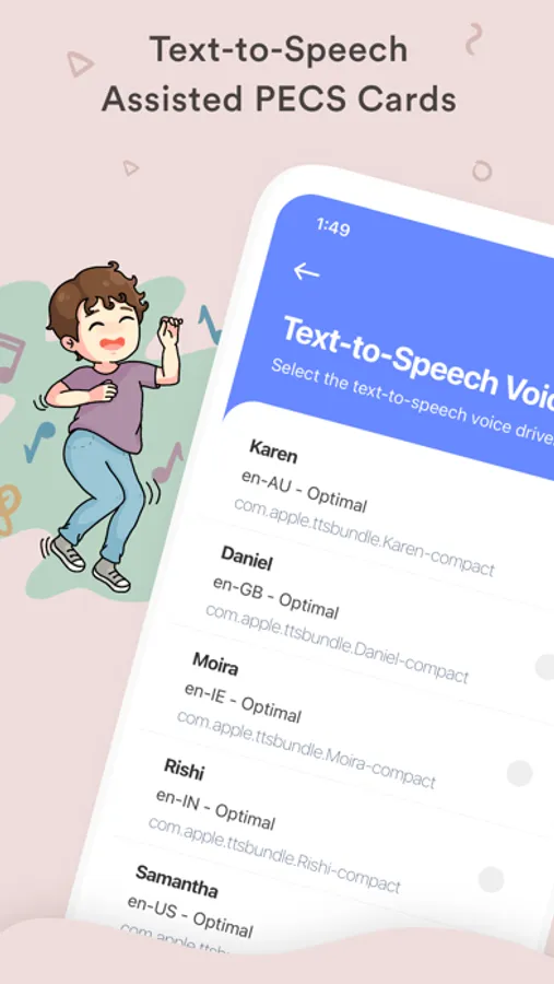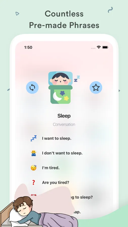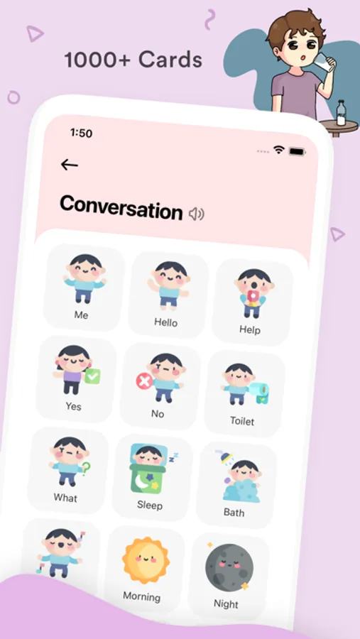 In this app, there is a card for every word that your kid might need to use in daily. And every card is matched with an definitive vector image about the phrase or word your kid trying to communicate.