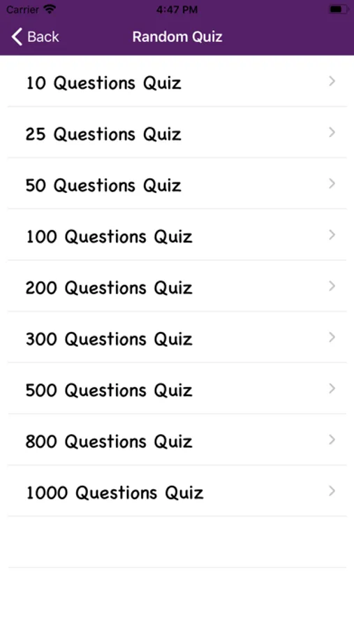 *9 Types of Mock Random Quiz Available with Different Number of Questions in Each Quiz Type.