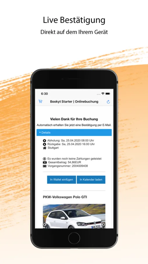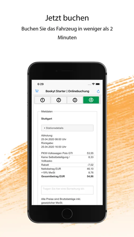 Wählen Sie das gewünschte Fahrzeug aus, geben Sie das Abholung- und Rückgabedatum an, wählen Sie Zusatzartikel aus und schließen die kostenlose Reservierung ab.