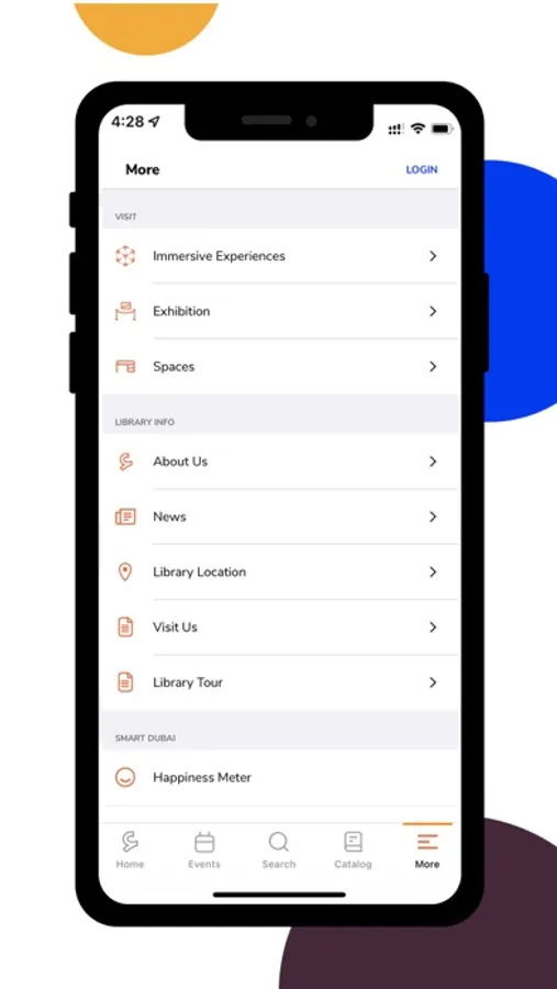 * Visit different categories in more section to find your reservation, checkouts, events, preferences, profile details, library info, and happiness meter.
