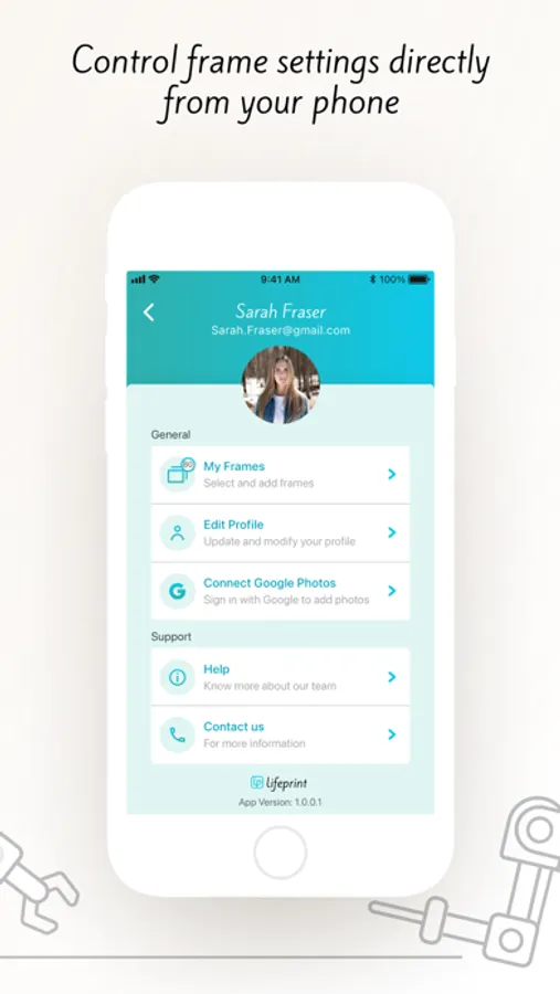 Simple to use and wonderful to view. Lifeprint Frames lets you stay connected and share your latest photos with loved ones around the world. Just invite your family and friends to your Lifeprint Smart Photo Frame and start sharing your favorite memories with each other! Gather snapshots and live photos from your phone or Google Photos™ and upload them directly to the frame in seconds. Create slideshows of weddings and birthdays, then view them on the display of your frame in gorgeous clarity. Receive notifications whenever photos come in from loved ones and personalize your frame settings directly from the app whether you’re at home or on the go. Lifeprint Frames preserves both your happiness and security. So when you're uploading family reunion or vacation photos, you can be sure your photos are safe. Pictures say a thousand words. Lifeprint Frames perfectly displays your photos so they say a thousand more.