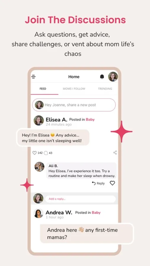 - Discover: Dive into real stories, practical mom hacks, and inspirational posts.