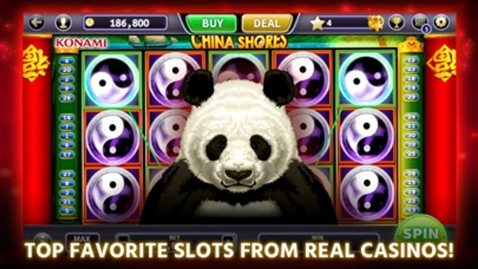 - KONAMI - Play Konami favorites like China Shores™, Jumping Jalapenos™ & Dragon's Law Twin Fever™