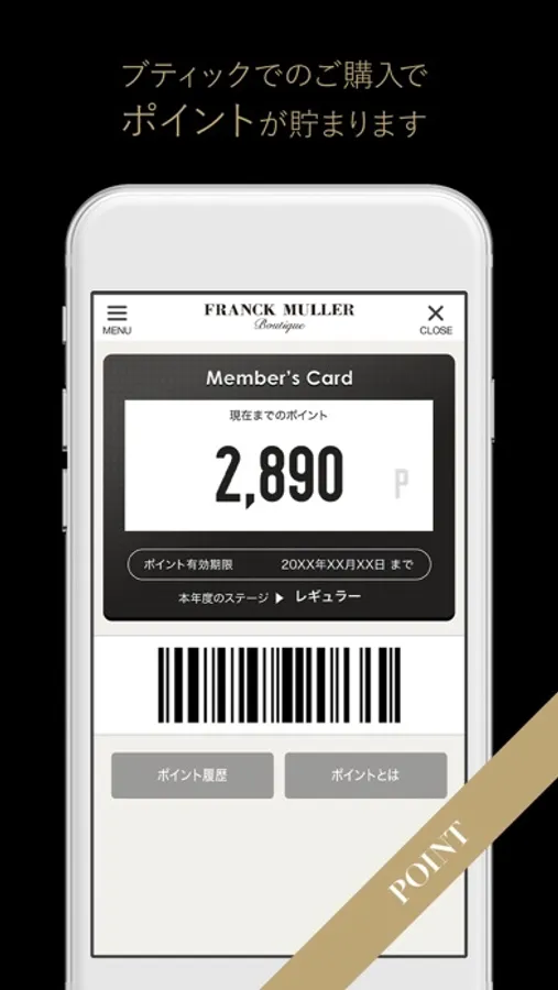 フランクミュラーブティックでの店舗でのお買い物時にご購入に応じてポイントが貯まっていきます。