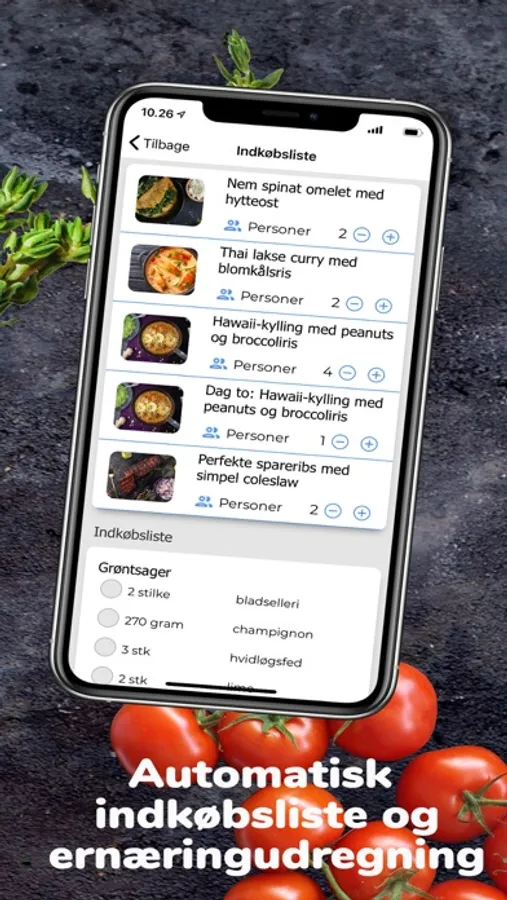 4. En smart indkøbsliste, der altid opdaterer sig automatisk, ud fra dine valgte opskrifter