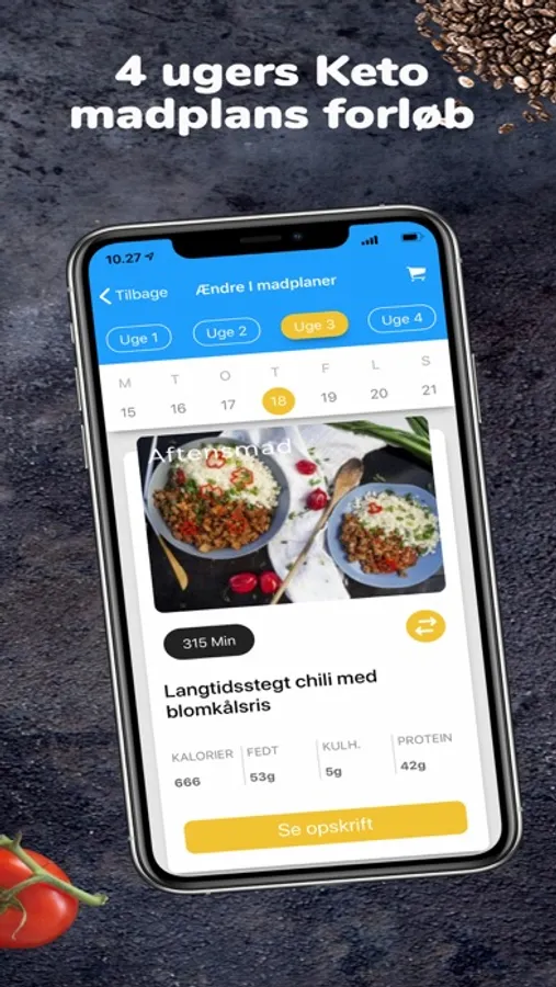 Appen giver dig et fuldt overblik over Keto maden, igennem vores Keto madplaner eller 4 ugers individuelle Keto forløb
