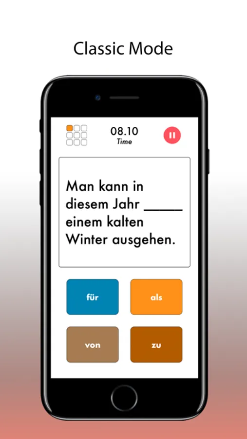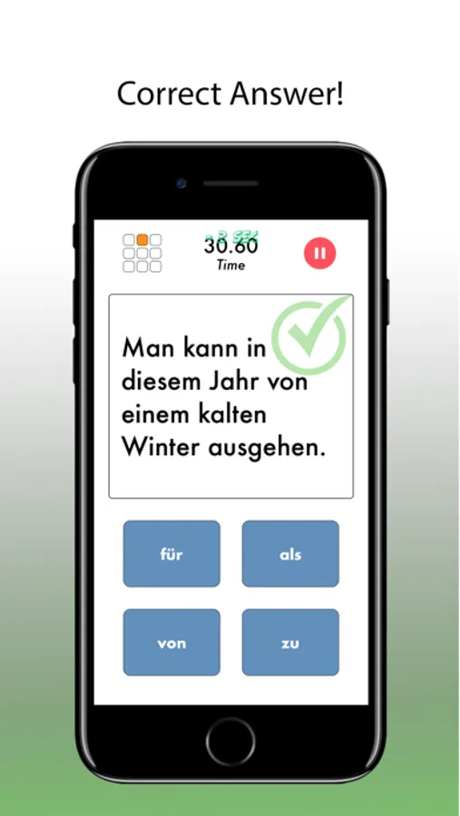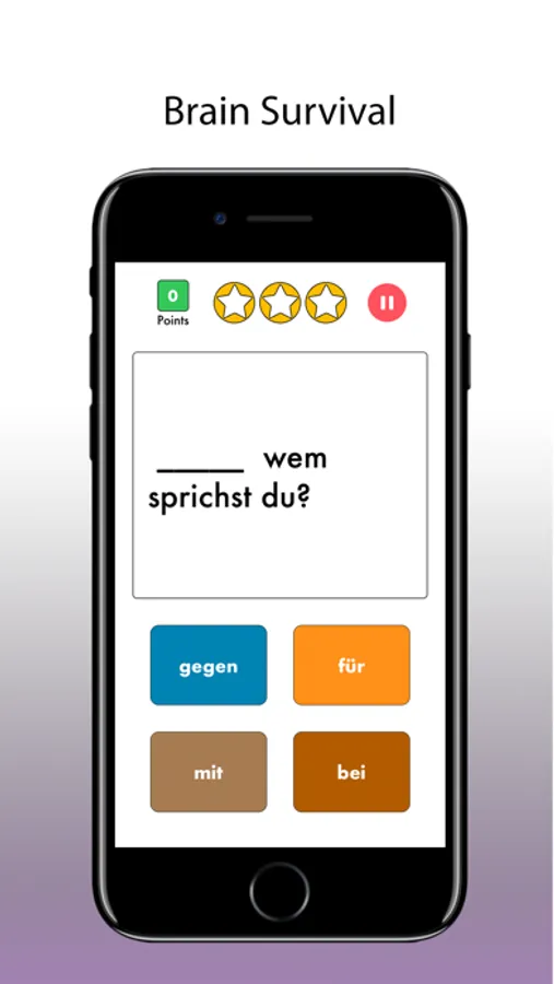 "Verben mit Präpositionen Plus” is a practical application that consists of four game modes: