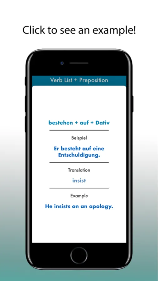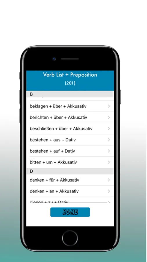With the free version, you will have access to 30 verbs + prepositions. Buy the full version to remove the advertising and gain access to more than 200 verbs with prepositions to be a master in German. The list is still growing. Obtain too, with this purchase, free updates to the list of the verbs.