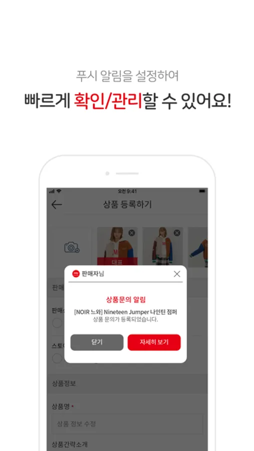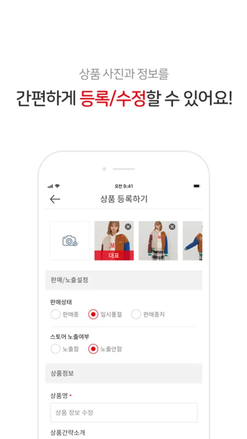 - 스마트폰을 통해 간편하게 상품을 등록/수정할 수 있습니다.