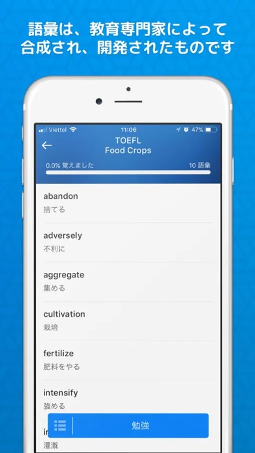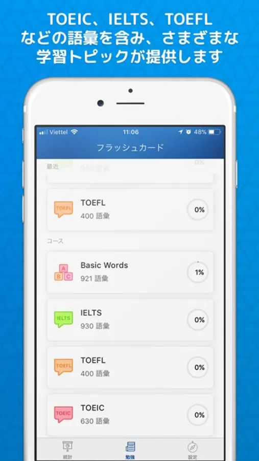 1. 英語教育の専門家によって700TOEIC語彙、1200IELTS語彙,400TOELF語彙、1000以上の会話形の英単語を選択し、作成されました。
