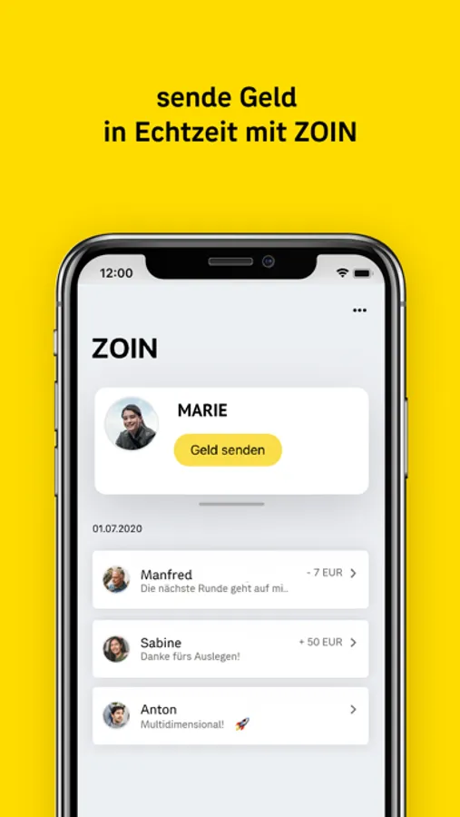 Mit ZOIN kannst du an deine Handykontakte Geld senden und empfangen. Ohne IBAN. Einfach per Nachricht.