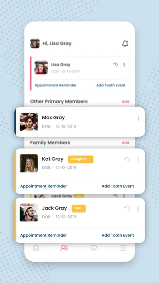 At ToothFace we are a family owned and operated business with a mission of bringing your attention to dental health in a 21st century way, providing you the ability to record your children’s tooth loss, and history, while sharing traditions, the Tooth Fairy, or the Rantocito Prerez (aka) Perez the mouse, with your family and friends. Easily identify your Dental Work with Tooth Palate Editing→Red-tooth loss, >Blue-tooth growth, >Grey-previous/or future work to be performed on the Adults/ or Childs teeth. Track each and all your Childs Teeth as they Come and Go. Our app also allows anyone to privately track, visually log your dentist visits with data, appointments and GPS dentist search functionality. All the while keeping focus on dental hygiene and care, with a goal of preventing unwanted dental visits, and extra bills - one tooth at a time.
