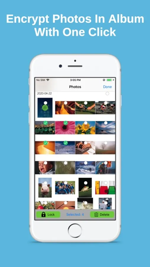 The APP is a private vault for photos protected by Touch ID, Face ID, numeric passwords, and the APP does't visit internet and keep encrypted datas in iOS system photo library.