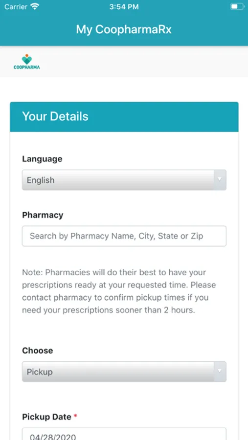 Allows to send messages and prescriptions to COOPHARMA pharmacies.